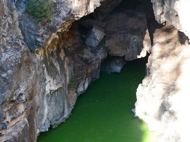 世界上长度排得上名号的水下系统,很多都经由地上毫不起眼的池塘进入。德国名为“蓝泉”的小湖就是这样的一处入口;还有一处位于挪威中部,名叫“普鲁拉”,已夺去两位潜水者的生命。南非北开普省的卡拉哈里沙漠边缘的“博斯曼斯加特洞”,又被称为“布须曼人洞”。看上去只是个小池塘,实际上这儿是一个深达八百八十五英尺且被水淹没的洞穴的入口。