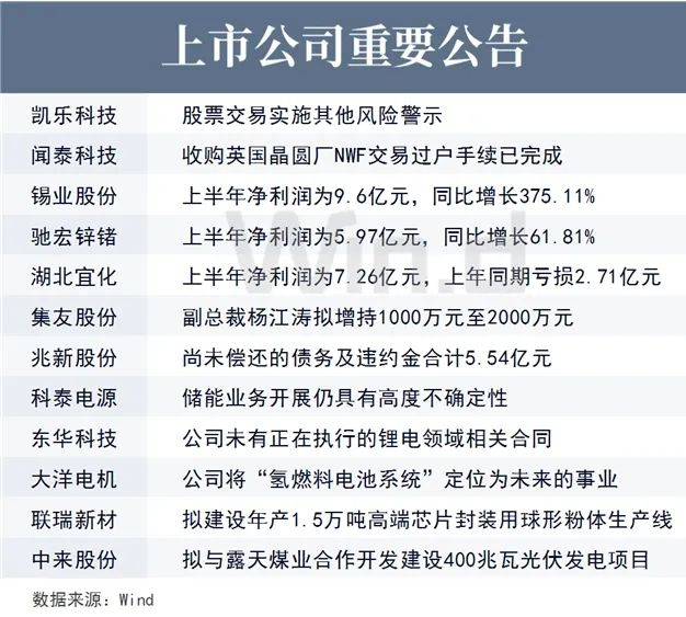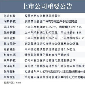 12、盐湖提锂赚钱超乎想象!科达制造半年报披露,上半年参股公司蓝科锂业净利润2.34亿元左右,净利润率达46%。科达制造确认投资收益约1.14亿元,同比暴增4171.61%。而随着股价大涨,科达制造员工持股计划浮盈豪赚8倍。