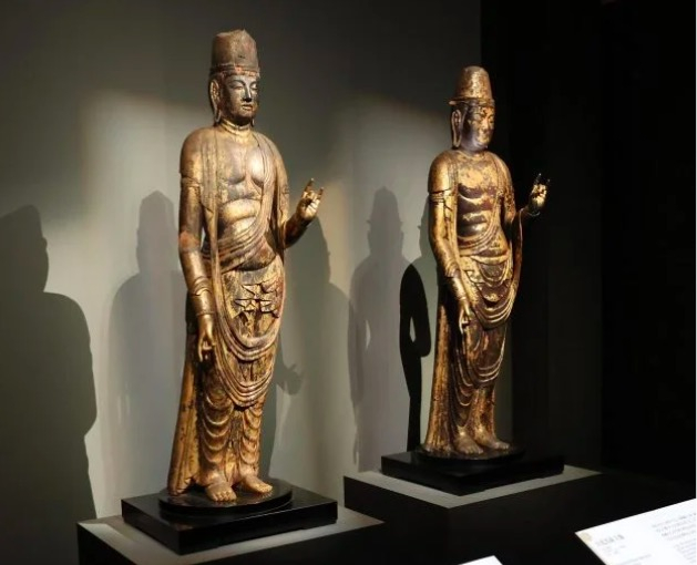 “月光菩萨立像”和“日光菩萨立像”(右),平安时代(10—11世纪),奈良・正历寺藏
