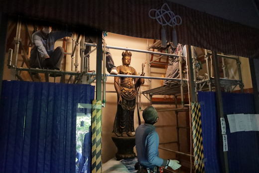 佛像侧向缓缓移出