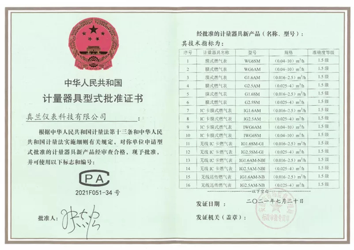 上海真兰仪表科技股份有限公司是一家落地上海青浦工业园区的科技创新型企业,从事燃气计量仪表与相关设备的专业研发、制造与销售。由于列入了《实施强制管理的计量器具目录》,公司生产的燃气表、流量计均须取得计量器具型式批准证书,方可生产销售。