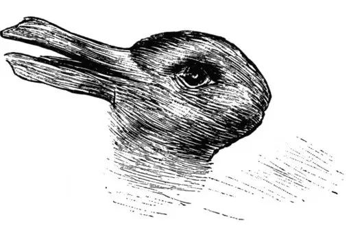 鸭兔图,心理学家J.贾斯特罗在他的《心理学中的事实与虚构》中画出的一个模糊的图形。