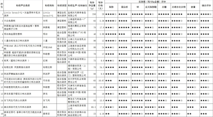 本次比较试验共计购买16款冷饮样品,包括12款冰淇淋和4款雪糕,均为当下流行且知名度较高的网红产品,其中3款为进口产品,单支/盒重量从23g至250g不等,单支/盒价格在3.99元至34.5元之间。