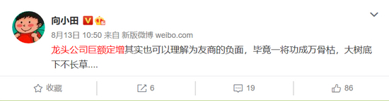 正如向小田所说,“龙头公司巨额定增其实也可以理解为友商的负面,毕竟一将功成万骨枯,大树底下不长草.... ”