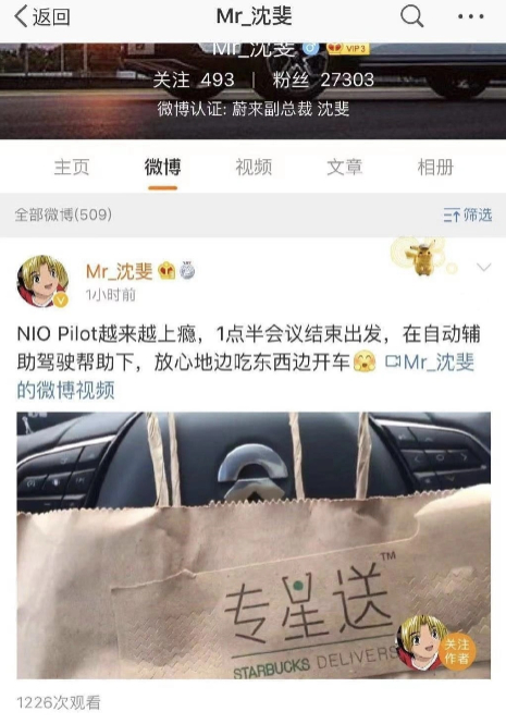 此外,蔚来副总裁沈斐还曾发微博表示,“在自动辅助驾驶帮助下,放心地边吃东西边开车”,也在一定程度上宣传了蔚来辅助驾驶功能可以“解放双手”。目前,该微博已删除。