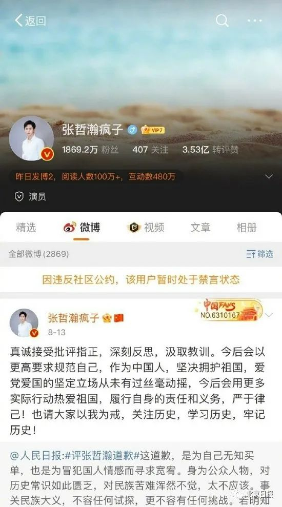 张哲瀚相关账号被封禁