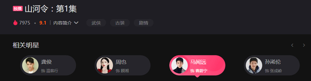 优酷视频平台《山河令》播出页面,删除主演张哲瀚名字