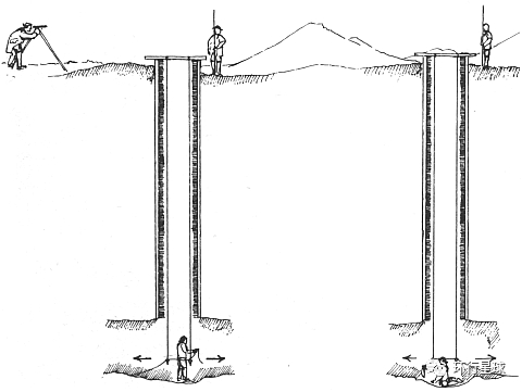 分段式隧道开凿示意图,开凿Blisworth中使用了20个这样的竖井(shaft)。