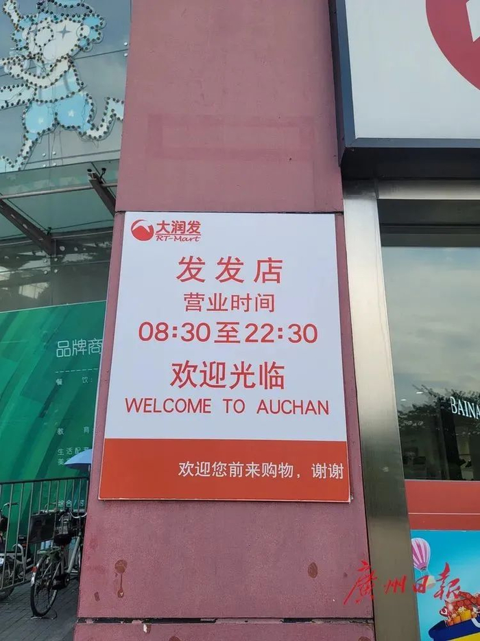 据广州日报,记者了解到,目前大润发在广州有5家门店,分别是花都店、新塘店、番禺店、增城店和发发店。8月16日下午,记者来到位于广州市天河区奥体南路12号高德汇购物中心1~2F的大润发欧尚发发店。