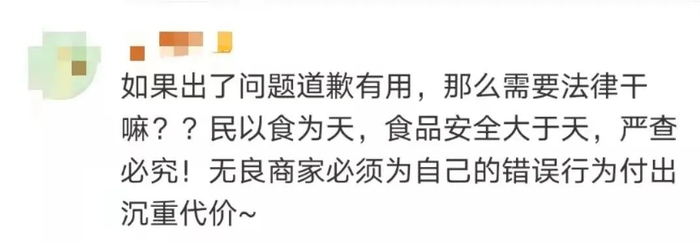 网友评论表示,食品安全大于天,商家必须为自己的错误行为付出代价。