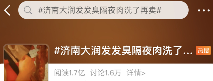 8月16日上午,大润发通过其官方微博发布致歉声明,称大润发济南省博店相关肉品已全部封存下架,涉事员工停职接受调查,门店将立刻进行整改,即日起在全国门店开展自查自纠工作。