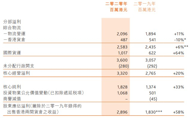 一是基本面上,亮眼的业绩支撑。2020年,由于疫情因素,嘉里物流的收入和核心纯利增长均创下新高:收入达到533.6亿港币,同比增长30%;核心纯利为18.28亿港元;同比增长33%。