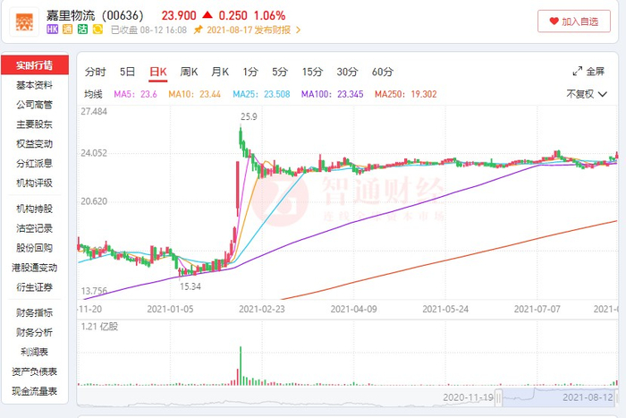 疫情加成的业绩+高溢价收购,让嘉里物流的股价上了一个新的台阶。