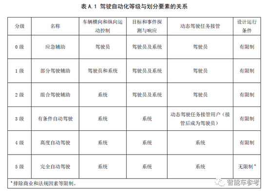自动驾驶分级国标,基本方法和内容都参考了SAE标准,分为L0-L5六级,描述也类似。