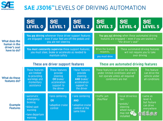 L3-L5则成为另一组,SAE使用的是自动驾驶功能的字眼来描述。