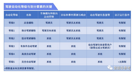 L2=辅助驾驶;L3=自动辅助驾驶;L4=自动驾驶;L5=无人驾驶。