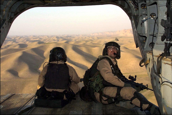 2001年11月15日,美国陆军特种部队士兵乘坐奇努克直升机进入阿富汗。