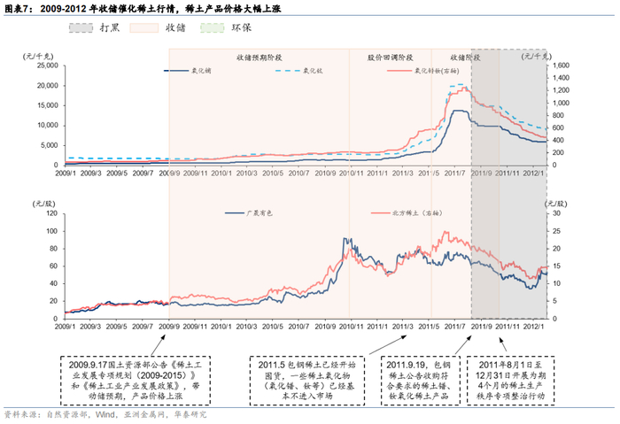 政策驱动时代:收储等政策创造了2009-16年稀土产品价格的大幅上涨和漫长的熊市