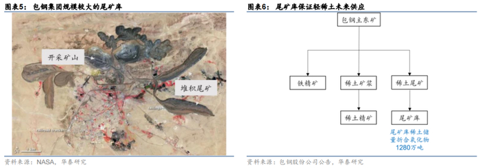 尾矿库保证轻稀土未来供应,中重稀土供应受限严重。包钢集团每年从其主东矿采选矿石约1000万吨左右,经过磁选浮选过程得到三类产品:铁精矿、稀土矿浆和稀土尾矿。尽管尾矿中稀土品位达7%左右,但由于工艺等原因,回收利用成为难题,集团于1965年建成尾坝矿,经多年累积,已成为规模较大的“尾矿库”。包钢股份21年7月在投资者互动平台表示,公司拥有的尾矿库稀土储量折合氧化物1280万吨,因此可保证轻稀土未来供应;而中重稀土方面,国内大量矿山由于环评尚未复产(赣州稀土自16年以来处关停状态),缅甸进口稀土矿呈收紧趋势,我们预计未来3-5年内中重稀土矿供给天花板约10000吨左右(折氧化物),供应上面临明显天花板上限。