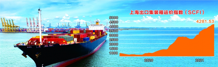 去年11月,上海出口集装箱运价指数(SCFI)首次站上2000点,在今年4月底突破了3000点关口,7月中旬冲破4000点。