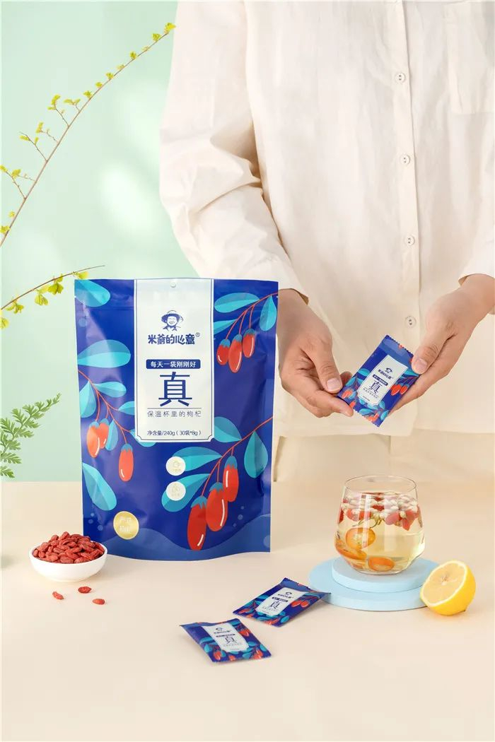 一小包一小包的设计很人性化,再也不用怕打开吃不完枸杞会变质,而且小袋的包装材质也很用心,特地选用锡纸做包装材料,锡纸本就有保鲜防潮的作用,而且在灌装时会在袋里注入氮气,起到双重保鲜防潮的作用,让你吃到的每一颗枸杞都是新鲜安全的。