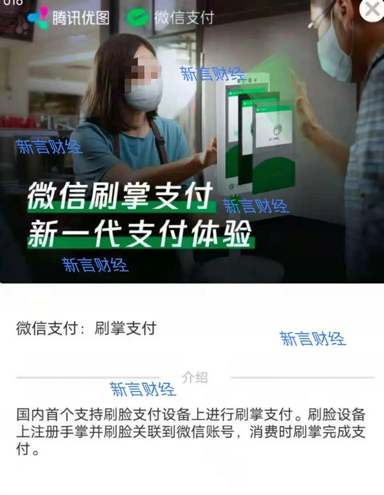 《新言财经》了解到,刷掌支付是由腾讯优图和微信支付合作推出的新支付方式,目前还处于内测阶段,用户可在刷脸支付设备上体验刷掌支付。具体的操作方式是,用户需要在刷脸设备上注册手掌并刷脸关联到个人微信账号上,线下消费时,将手掌对着微信支付设备的扫描区,设备确认完成后完成支付。