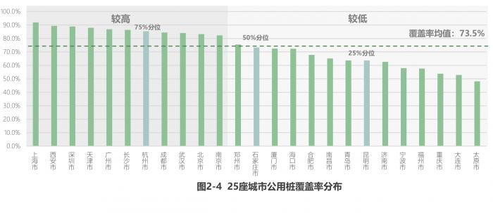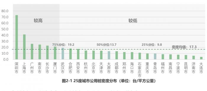 25座大城市中,不同城市的中心城区公用桩密度,分化程度较高。