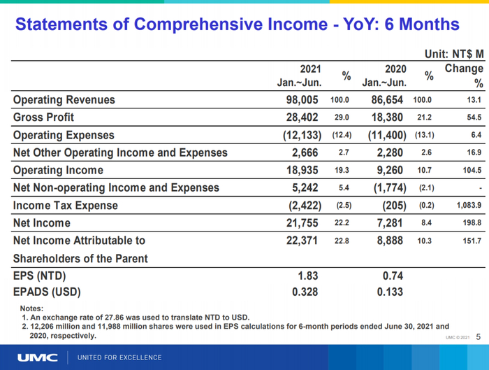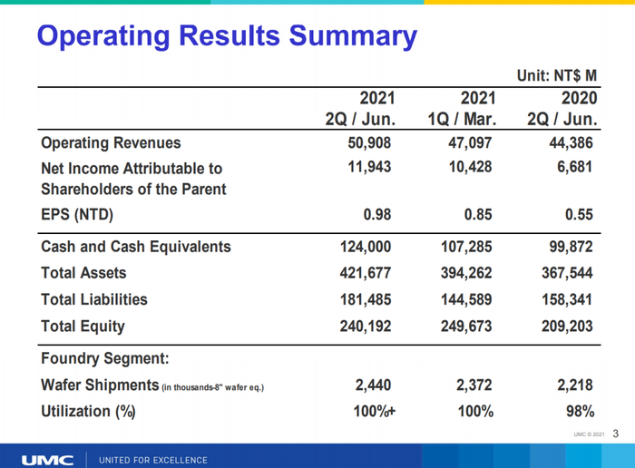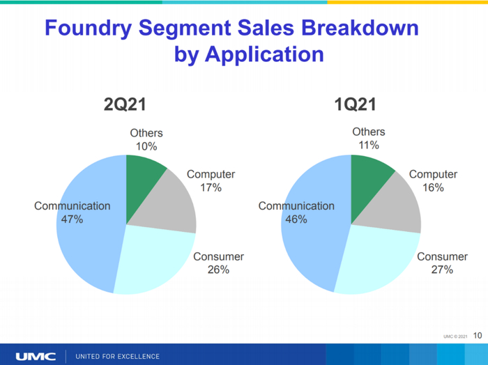 5G和数字化转型推动了Q2的强劲表现,Q2产能利用率达100%,整体晶圆出货也环比增长3%,达到244万片8英寸当量。受4G、5G智能手机、固态驱动器和数字电视驱动,28纳米收入持续增加。