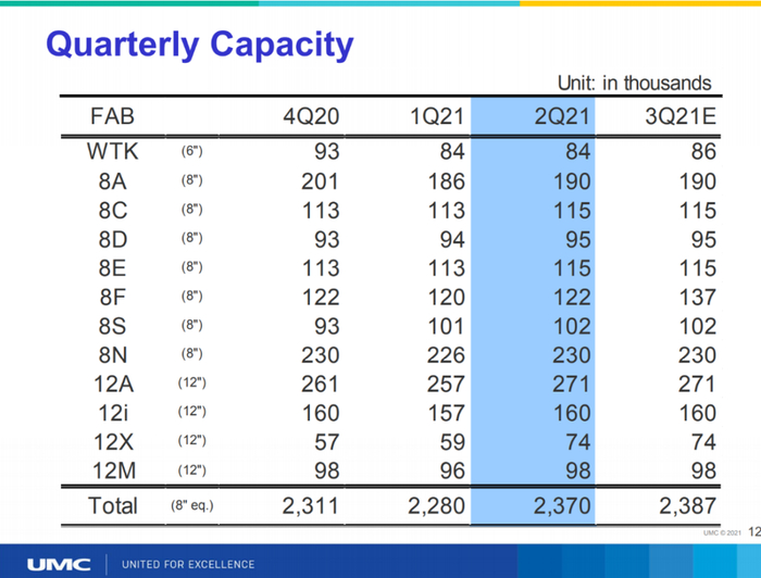 产能方面,二季度产能有所增加,增加主要来自12A和12X,Q3还会有产能增加。