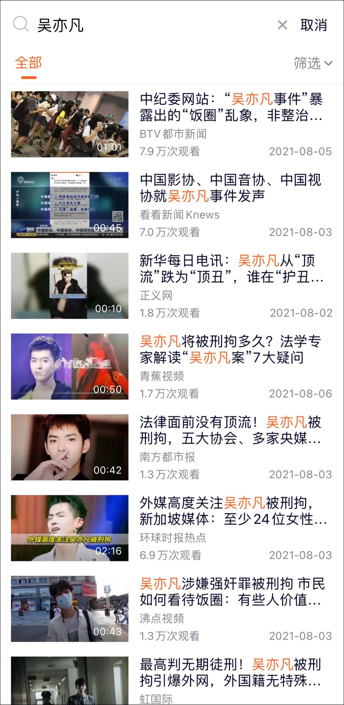 根据会员单位反馈数据,截至上午10时,全网合计处理短视频节目达190万条、影视综艺节目7000部次。目前仍在继续开展有关节目内容的排查和处置。“多平台下架吴亦凡作品”迅速登上微博热搜榜,引发用户热议,得到社会舆论广泛支持。