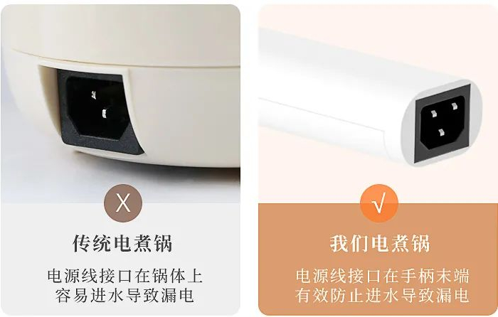 以前那种电煮锅的插口都是在锅身上,容易进水就不说了,每次洗的时候都心惊胆战,害怕把水灌进去。