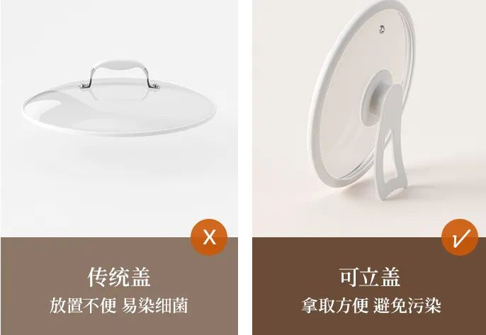 可立锅盖还很卫生,不用的时候立起来,锅盖边缘就不会沾到脏东西。