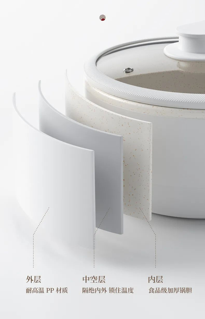 顽米手持电煮锅还有一个优点就是它采用了纳米陶瓷釉锅胆,跟普通电煮锅的金属内胆比起来,更加安全耐用。