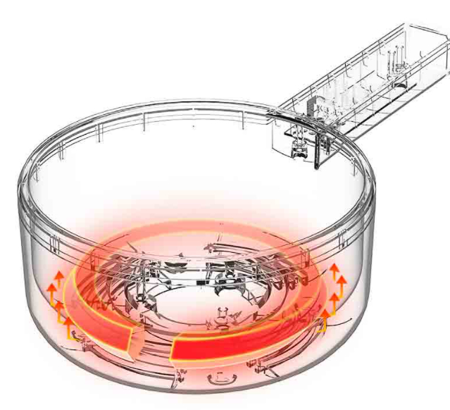 锅底环形加热,导热均匀纳米陶瓷釉锅胆,煎蛋不沾