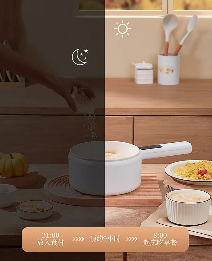 还有9.6小时智能预约,前一天放好食材起床就有粥喝。