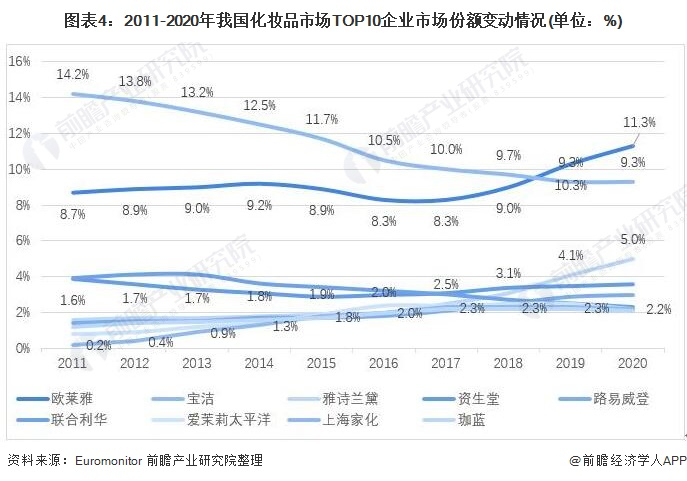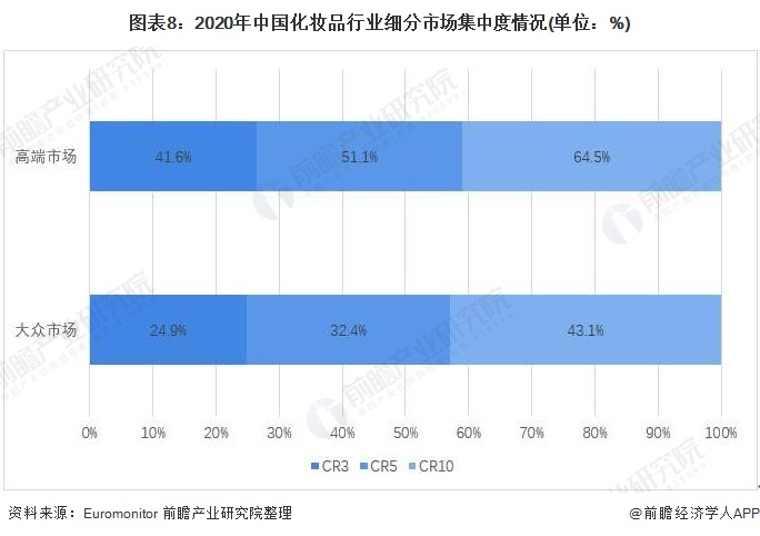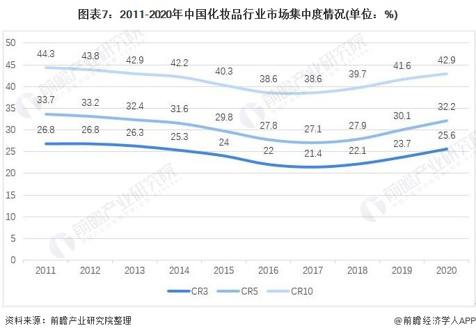 原标题:【行业深度】洞察2021:中国化妆品行业竞争格局及市场份额(附市场集中度、企业竞争力评价等) 来源:前瞻产业研究院