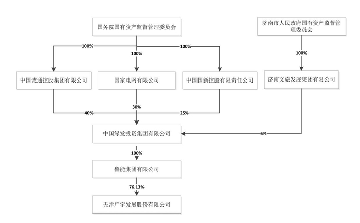 广宇发展在公告中表示,中国绿发股权结构调整后,公司控股股东仍为鲁能集团,实际控制人仍为国务院国资委。
