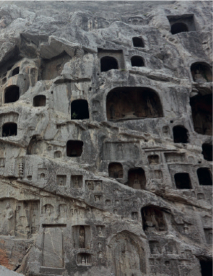 给我留下了极深的印象。石窟开凿于伊水两岸的崖壁上,河水在石灰岩壁之间奔腾而过。龙门石窟是关于正空间和负空间之运用、尺寸和规模之区别的实例,不断让你根据周围的体量感知自己的分量。