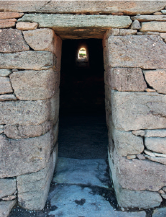 (Gallarus Oratory)就是这样一个地方。这是一个由石块砌成的建筑,入口朝西,东面开窗。一旦迈进去,整个船形空间一片昏暗,只有另一头的那扇窗户透进些许亮光,此外再无光源。