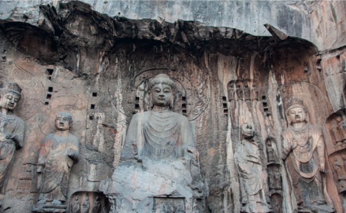 里,有两只泥土制成的野牛,土直接取自洞窟地面。龙门石窟乃至亚洲其他的石窟寺庙,都是这两只野牛遥远的后代,因为它们都体现了同一种理念,即用随处可见的岩石制造物体,又将制成品留在原处,使之成为岩石的一部分。