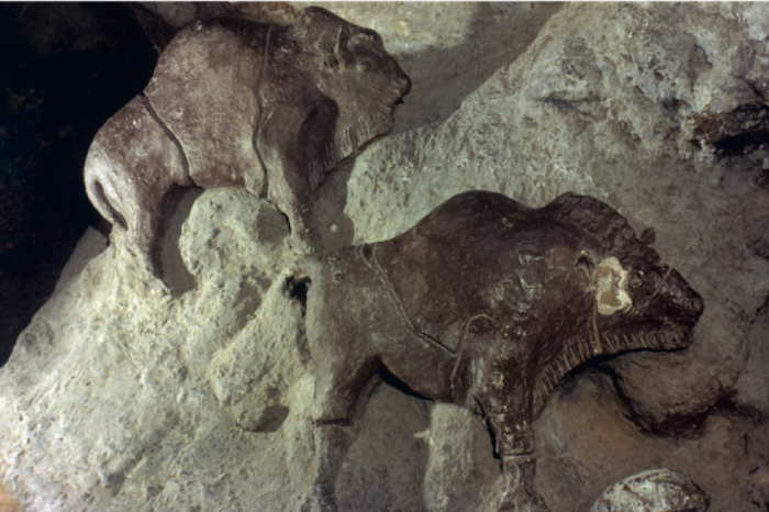 图多杜贝尔洞窟中的野牛浮雕 约公元前1.2万年 黏土 分别长 63厘米、61厘米 蒙泰斯基厄-阿旺泰 阿列日,法国
