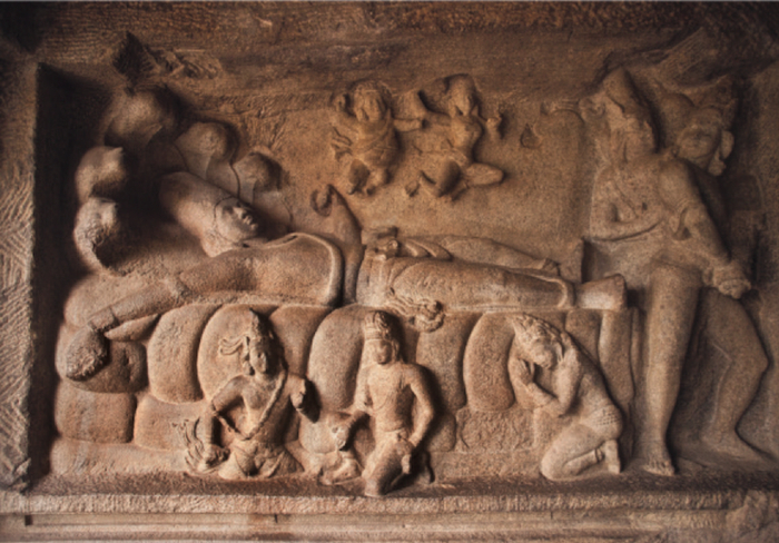 毗湿奴马黑萨苏兰征服者石窟约7世纪马马拉普拉姆泰米尔纳德邦,印度