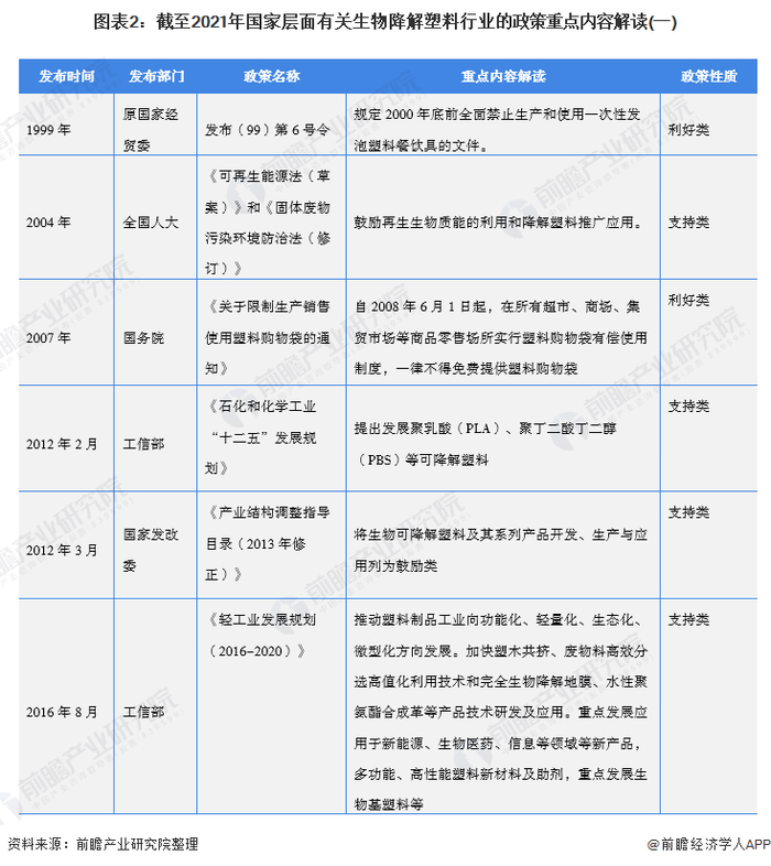 原标题:重磅!2021年中国及31省市生物降解塑料行业政策汇总及解读(全)“禁塑令”驱动行业发展 来源:前瞻产业研究院