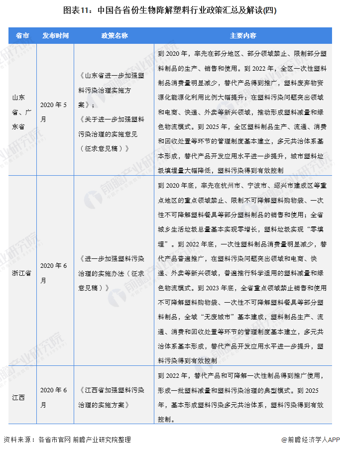 ——31省市生物降解塑料行业发展目标解读