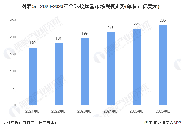 4、预计2026年全球按摩器市场规模将接近236亿美元