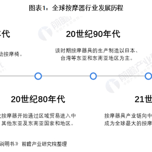 进入20世纪90年代,按摩椅进入家庭的步伐加快,各类按摩小电器品种进一步丰富,逐步延伸出足部、腿部、腰部、背部、头部等细分按摩器具市场。该时期按摩器具的生产制造以日本、台湾等东亚和东南亚地区为主。