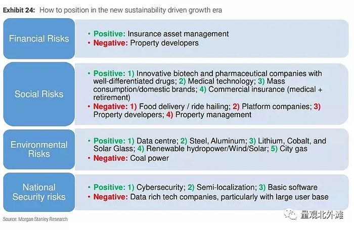 挑战和机会:重数据型科技和平台企业,以及房地产企业仍然处于政策压制中。“新经济”板块会继续享受政策支持。