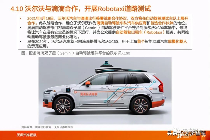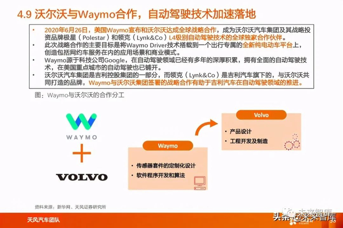 (3)深度自研,合作开发:既与供应商保持合作,共同开发相关产品,同时又全面布局智能汽车 相关产业链,深度自研,典型车企为传统头部车企上汽集团、长城汽车、吉利汽车等。