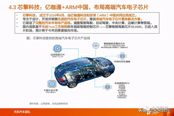 (2)软件先行,布局硬件:软件算法已经过多次迭代,较为成熟,开始布局芯片等硬件领域,典 型车企为新势力中的蔚来汽车、小鹏汽车。