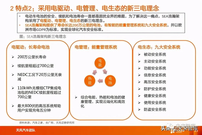 特点2:采用电驱动、电管理、电生态的新三电理念